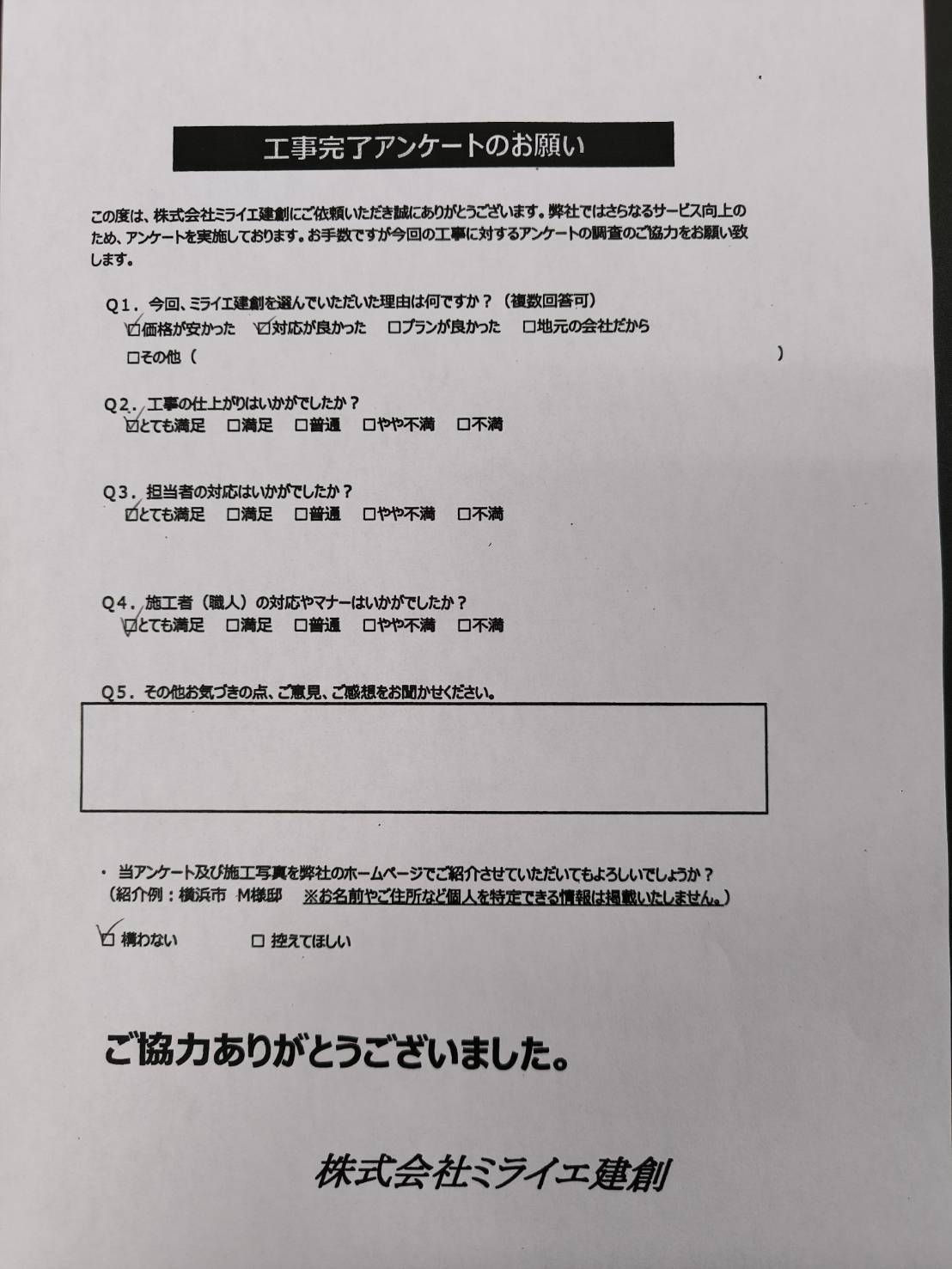 金額面で想像していたよりも安かったということでご依頼いただきました!